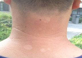 采用中药熏蒸+311窄谱UVB照光+中药内服。治疗当天明显见效,一周后来院进行二次治疗。