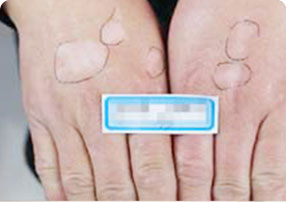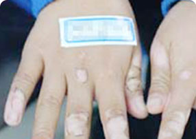 小面积白癜风且稳定期,采取黑色素种植技术,治疗一年后复查无复发。